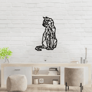 Cuadro Decorativo de Metal con Diseño gato geometrico